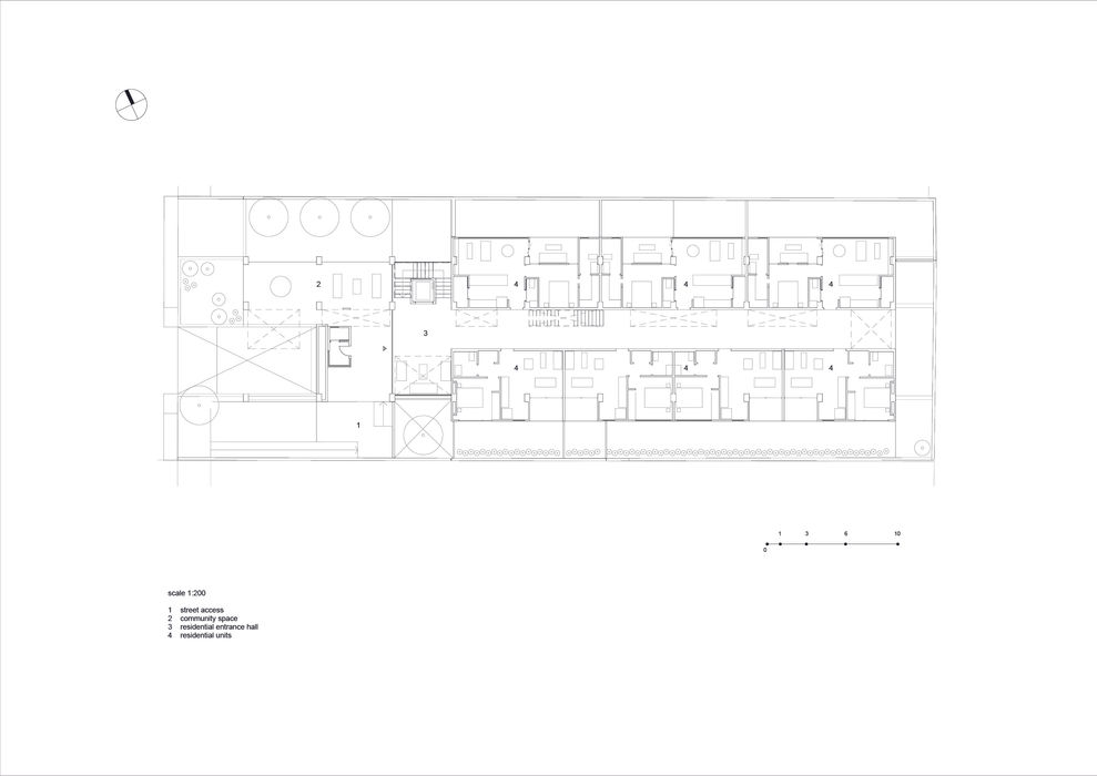 El proyecto fue concebido como un espacio de encuentro e interacción entre estudiantes. Sus múltiples zonas comunes, los corredores con dobles alturas y las escaleras abiertas permiten relaciones visuales, acústicas y sociales entre los diferentes niveles. Más que un edificio, se trata de un ecosistema social donde la arquitectura promueve la convivencia diaria.